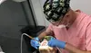 • Piaskowanie (30 min) oczyszczanie zębów z osadów i przebarwień przy użyciu strumienia powietrza, wody i piasku, dzięki czemu zęby stają się wyraźnie jaśniejsze i gładsze.