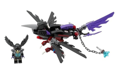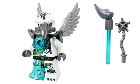 - zestaw Lego z minifigurką Razcala, która unosi się w szybowcu, aby obserwować z wysoka mistyczny świat Chima i strzec CHI