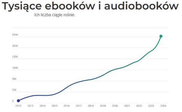 ok. 250 000 e-booków, audiobooków i synchrobooków do wyboru