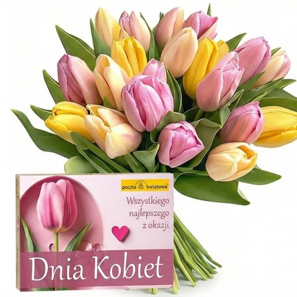 • skład: kolorowe tulipany - 19 szt., bombonierka na Dzień Kobiet (180 g)