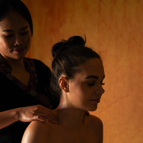 Holistyczny masaż balijski dla par, oparty na płynnych ruchach i aromaterapii. Pomaga osiągnąć głęboki relaks, wyciszenie oraz przywrócenie równowagi energetycznej w spokojnej, harmonijnej atmosferze.