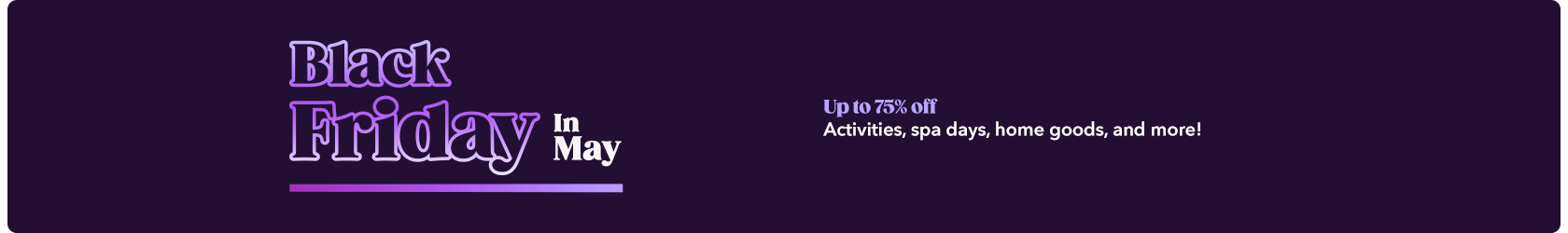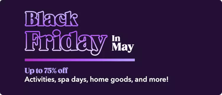 In Groupon, we believe there’s no point waiting the whole year for the best bargains. That’s why we came up with Black Friday in May - yet another occasion to find great deals on home products, amazing experiences and Spring Break getaways.
